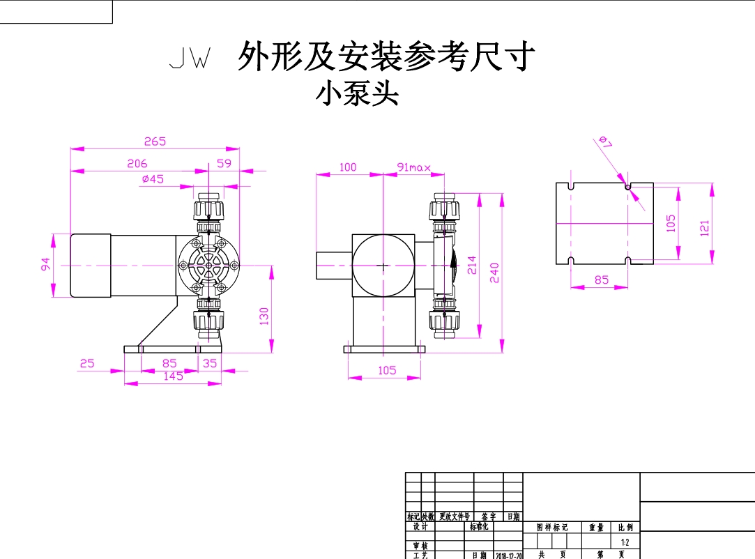 4、泵头材质可用PVC泵头、PVDF泵头、304SS泵头、316SS泵头等等。